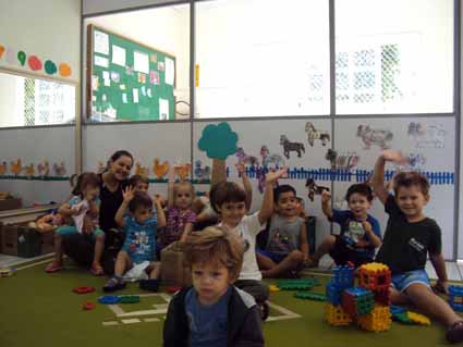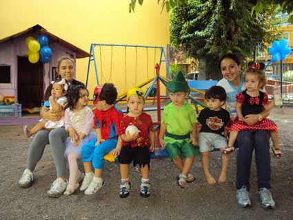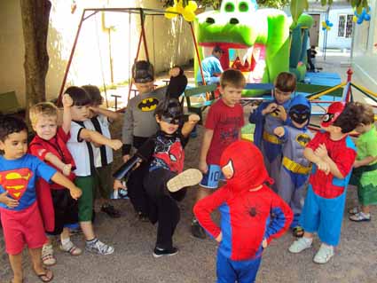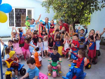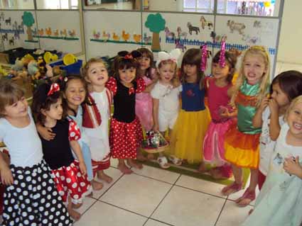 As profes e os alunos da Escolinha durante a Festa à Fantasia
