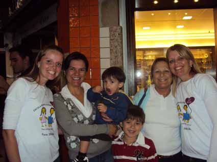 Milena, Guilherme, Eduardo e Varlene com as diretoras da Escolinha Alegria, Juliana e Adriana Kist