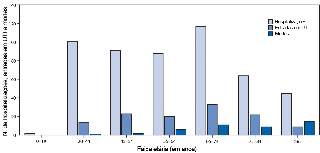 Segundo o CDC, a cada 10 hospitalizações no país, 4 são de jovens e adultos, com idades entre 20 e 54 anos. O estudo também aponta que, dos 2,5 mil casos analisados, 508 foram levados a hospitais com sintomas mais graves, com quadro de febre alta, tosse e dificuldade de respirar. A letalidade, no entanto, permanece sendo mais alta apenas entre os mais velhos.