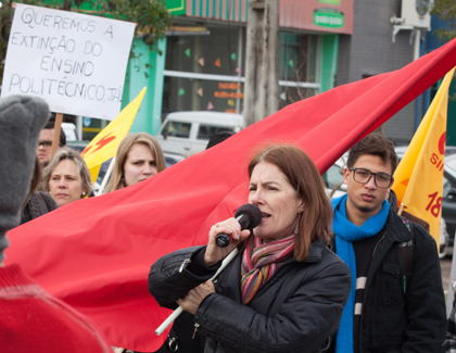 Miriam frisa que a greve também está mostrando a indignação da comunidade, especialmente dos estudantes. “Os alunos das escolas estaduais, principalmente do Ensino Médio, além do apoio que demonstram a todas as reivindicações dos professores, estão muito insatisfeitos com a reforma do ensino médio, agora politécnico”, explica. “Os estudantes reclamam que poderia existir o ensino politécnico, mas como opção para quem não quisesse cursá-lo. Eles se sentem despreparados para prestar vestibular ou concurso público, por exemplo”, salienta a diretora do Núcleo.