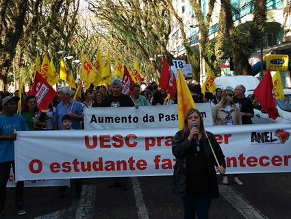 A manifestação foi uma iniciativa realizada pela União dos Estudantes Santa-Cruzenses (Uesc), Sindicato dos Comerciários e Conlutas. Por volta das 9 horas da manhã iniciou uma junção de pessoas, onde estiveram presentes alunos integrantes do Grêmio Estudantil de cada escola estadual do município. Segundo a coordenadora da Uesc, Clair Pereira, a entidade estará disposta a lutar ao lado dos professores, pois as decisões tomadas pelo governo não prejudicam apenas o funcionalismo público, mas toda a sociedade. “É um direito de todos. Vamos juntamente com os professores e cada servidor público cruzar os braços e protestar contra esses ataques do governo”, alegou Clair. Além disso, em relação ao aumento da tarifa de ônibus, a Uesc seguirá reivindicando através de mobilizações. “A grande maioria dos estudantes não trabalham, por isso, quem paga as passagens são os pais, e por mais que sejam apenas 20 centavos a mais, são estes 20 centavos cobrados a mais numa ida e volta de ônibus todos os dias. Há aqueles que têm a necessidade de utilizar o transporte até quatro vezes ou mais por dia, e isso certamente no final do mês pesa para uma família”, concluiu.