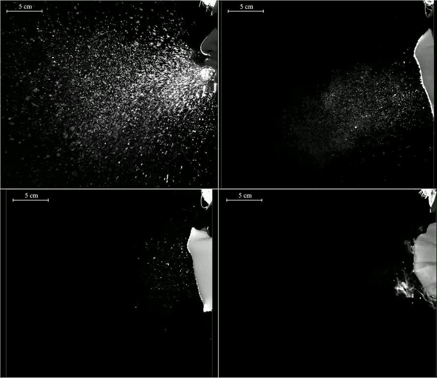 Publicada pelo período “Thorax”, a análise faz uma comparação sobre como ocorre a emissão dessas partículas enquanto uma pessoa utiliza diferentes tipos de máscaras ou nenhuma proteção. Para tanto, um vídeo foi gravado com uma lente especial que captura em câmera lenta a forma como as gotículas saem da boca.