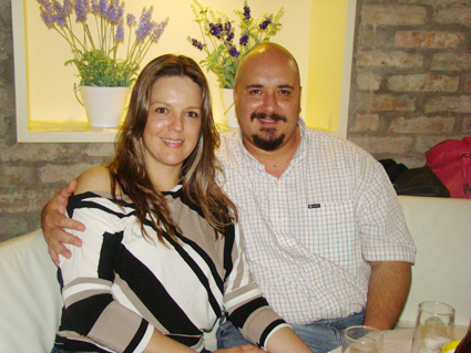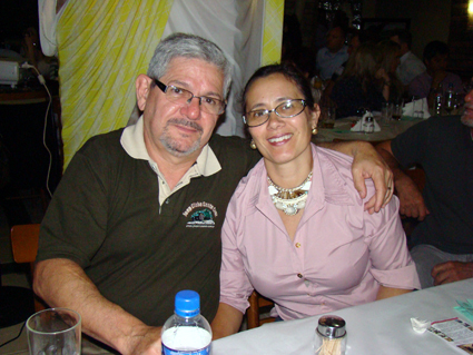 O presidente da Federação Gaúcha de Eisstocksport Renê Reinaldo Emmel e Nelsi Reis no desfile temático da 28ª Oktoberfest