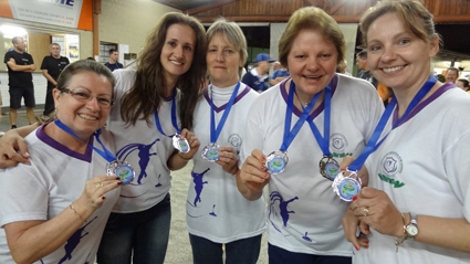 Vera Emmel, Katia Mattheis, Elsi Mattheis, Nelsi Reis e Marcia Walter no IX Campeonato de Eisstock na classificação em 2º lugar na categoria em equipe, e Nelsi Reis em 3º lugar no Individual