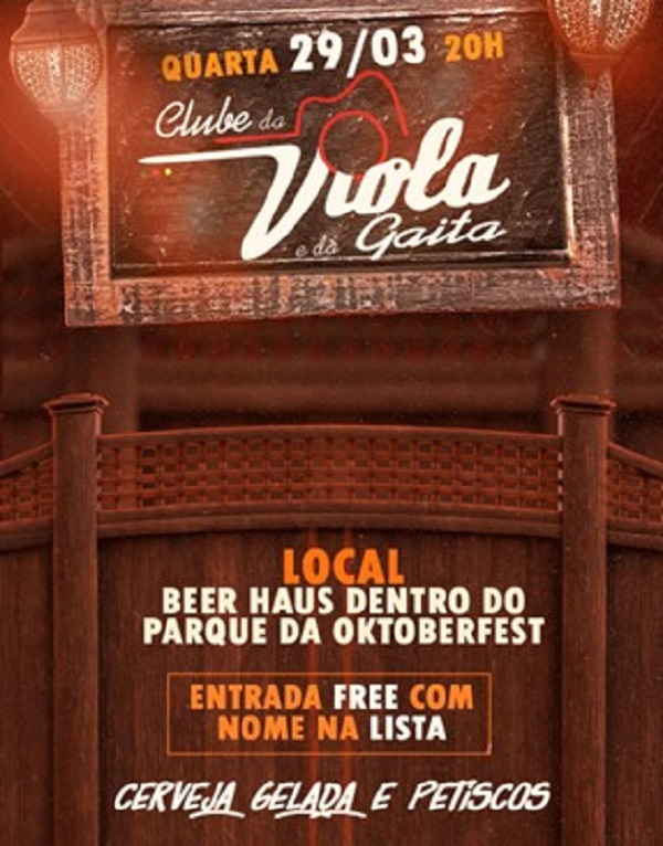 O Clube da Viola e da Gaita realiza, na noite de hoje, 29, mais um encontro comemorativo da entidade. O encontro será na Bierhaus, no Parque da Oktoberfest, a partir das 20h.
