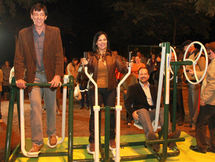 Autoridades, durante a inauguração, utilizaram os aparelhos da nova academia