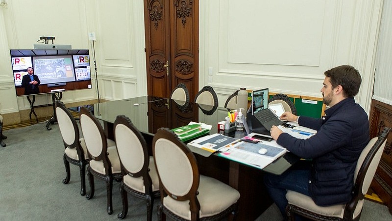 Dados foram apresentados pelo governador Leite e vice Ranolfo em videoconferência seguida de entrevista coletiva on-line – Foto: Gustavo Mansur / Palácio Piratini