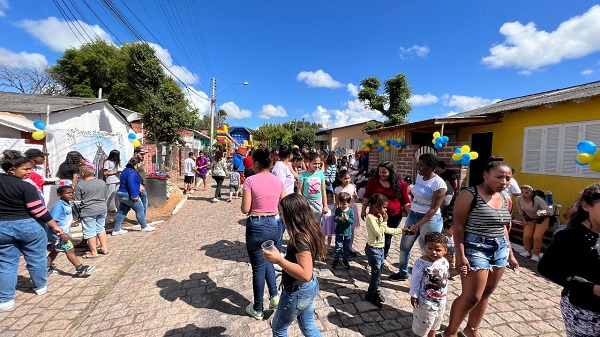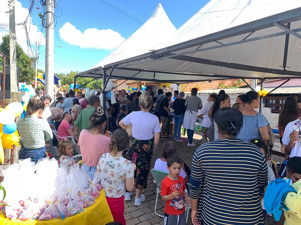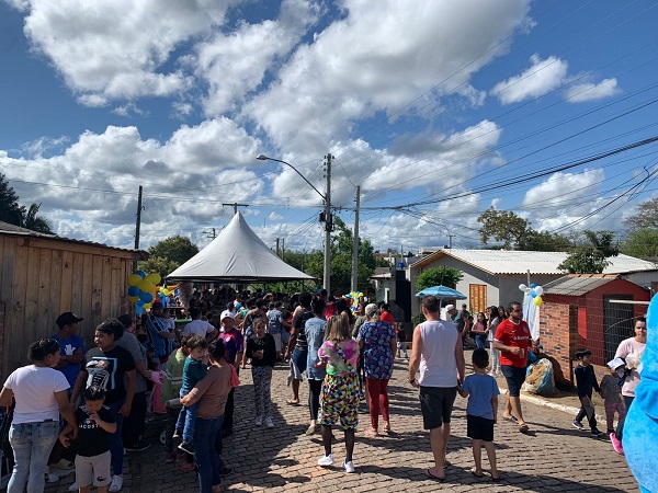 A tarde desta quarta-feira, 12, foi de sorrisos largos e olhinhos brilhando para cerca de mil crianças no Bairro Bom Jesus, em Santa Cruz do Sul. O motivo foi a festa de Dia das Crianças organizada pela moradora da Rua Adolfo Pritsch, Rosária Maria Lopes, que há 26 anos torna o 12 de outubro mais feliz para os pequenos da região.