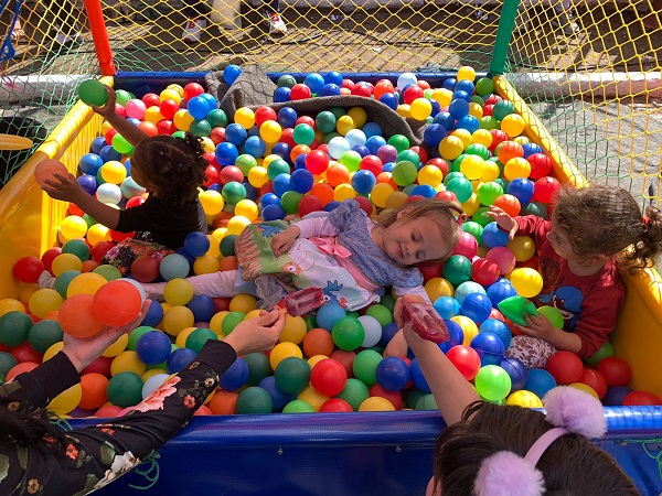 O evento, que começou às 14 horas, em frente à casa dela, contou com a distribuição de cachorro-quente, refrigerante, tortas, picolé, algodão doce e outras guloseimas. Já a diversão ficou por conta dos brinquedos infláveis, música e personagens que ajudaram a entregar os presentes e entreter a criançada.