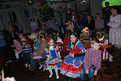 No dia 14 de junho a Associação Atlética do Banco do Brasil (AABB) promoveu uma animada Festa de São João. O salão principal foi lindamente decorado,incrementado com a contribuição do Programa AABB Comunidade, com muitos adereços confeccionados nas oficinas lúdicas sob supervisão da coordenadora pedagógica do programa, Lisandra Faccin. As crianças, com suas coloridas roupas caipiras, participaram das inúmeras brincadeiras – proporcionadas pelas recreacionistas Tati e Deise -, como a corrida do ovo e a dança da cadeira. Também tiveram ainda a oportunidade de fazerem tatuagens e pinturas. Todos se divertiram ao som do DJ Fábio. A pescaria na canoa com muitos brindes, deliciosos quitutes juninos, amendoim, quentão, pipoca, cachorro quente, pinhão e saborosas cucas, a fogueira e o show de fogos, animaram a todos.