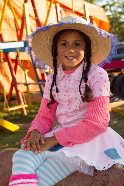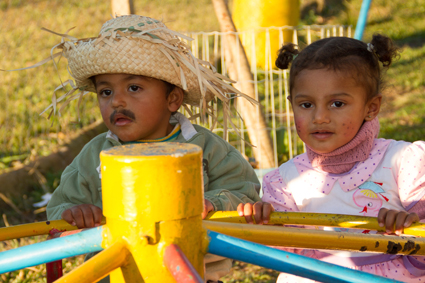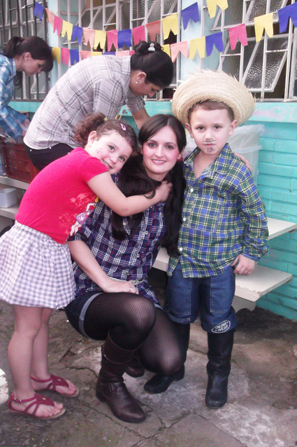 O caipira Jean Miguel Roos com a profe Fabiana e a caipira Luana