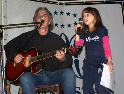 O cantor Miguel Beckenkamp acompanhado pela aluna do 2º ano, Manuela Swarowsky Schaack emocionaram as mães com uma bela homenagem