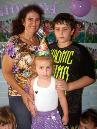 A aniversariante com a mamãe Silvana e o mano Arthur