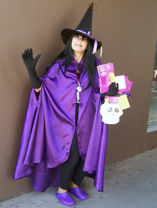 A escritora Valquiria Ayres, caracterizada de bruxa boazinha, divulgou o evento durante a semana no centro de Santa Cruz