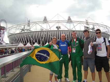 O atleta Fabiano Peçanha com a família unida em frente ao estádio olímpico de Londres após a eliminatória dos 800m com classificação.