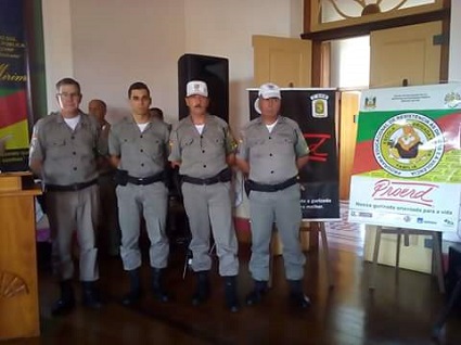 O evento contou com a presença de diversas autoridades, dentre elas o Coordenador Regional da 6ª CRE Luiz Ricardo Pinho de Moura, a secretária de educação do município, Ana Rosa Petry da Silva, o vereador Telmo Berger, representando Poder Legislativo, Instrutores do PROERD, professores, diretores de Escolas, alunos e monitores do Projeto Brigada Mirim e Brigada Jovem.