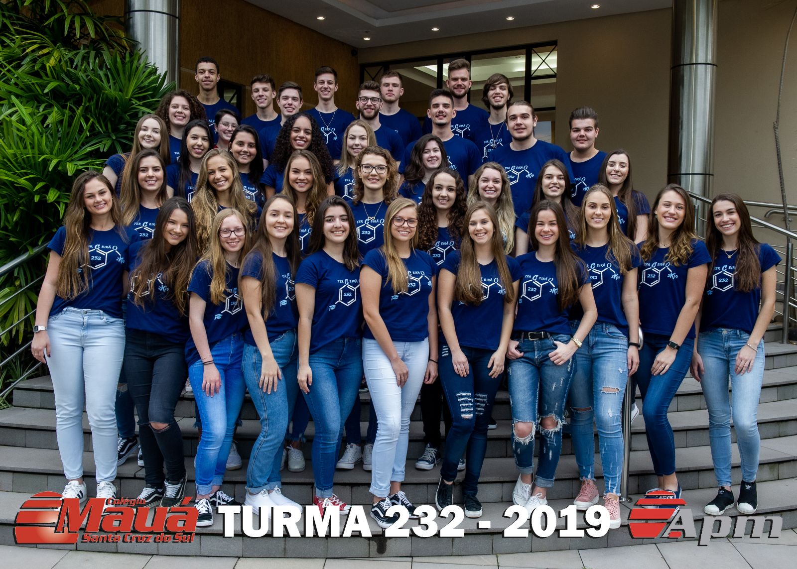 Turma 232: Agatha Schultz Schaefer, Aline David ,Amanda Dockhorn, Ana Carolina de Oliveira Vicosa, Ana Carolina Ripplinger, Ana Clara Hackenhaar Kellermann, Antonia Zacharias Kirst, Barbara Heuser, Bruna Grasel, Bruna Karnopp, Bruna Rafaela Hermes Moenke, Bruno Reis Kothe Jannuzzi, Carolina Loebens Hinterholz, Carolina Thomas Lau, Caroline Mendonca Bianchini, Chaiane Silveira Mello, Christopher Heling, Eduarda Aparecida Roos, Eduardo Jose Eisenhardt Braun, Fernanda Beckemkamp, Gabriel Loeblein Eidt, Giordano Schwertz Cadona, Giovana Luisa da Silveira, Jairo Jose dos Santos Junior, Laura Mueller Ferreira, Leandro Seibel, Luana Tayani Willms, Lucas Coelho Gamba, Maria Eduarda Molz Oliveira, Maria Eduarda Renner, Maria Gabriela Eckert, Maria Luisa de Azevedo Konzen, Martina Assmann Gothe, Matheus Werner Rasche, Nathalia Schilling, Pablo Martinez Morales, Sofia Sauer Guia, Uri Noah Lange de Vasconcelos e Vinicius Molz Schubert.