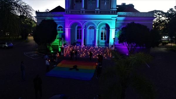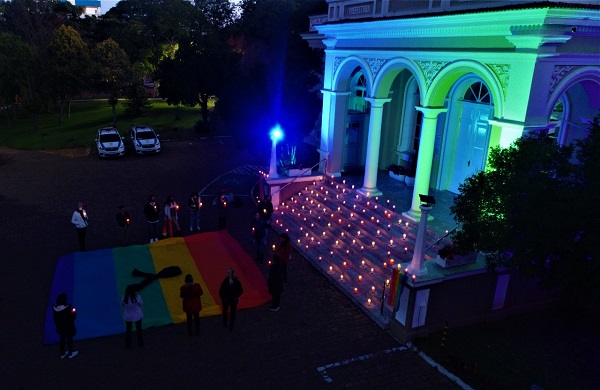 No Dia Mundial do Orgulho LGBTQIA+, celebrado nesta segunda-feira, 28, um ato foi realizado em frente ao Palacinho, em memória às vítimas de preconceito e intolerância. Houve também o acendimento de iluminação especial na Prefeitura. As iniciativas foram organizadas pelo Conselho Municipal da Diversidade de Santa Cruz do Sul.