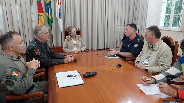 A notícia foi um dos anúncios feitos durante a primeira reunião do Gabinete de Crise convocada pela prefeita Helena Hermany, ocorrida na manhã de hoje. O encontro contou com a presença de integrantes do secretariado municipal, da Brigada Militar, do Corpo de Bombeiros, do Exército e da RGE.