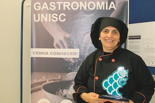 A auxiliar técnica do Curso de Gastronomia da Universidade de Santa Cruz do Sul (Unisc), Luciana Cassaboni, ficou em segundo lugar na Categoria Beneficiamento e Produto Final no 3º Prêmio Inovação Aquícola. O evento ocorreu no 12ª Aquishow Brasil, em São José do Rio Preto, São Paulo.