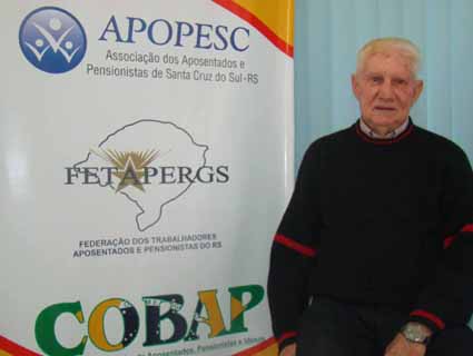O dia 25 de abril de 2012 foi uma data muito especial para o presidente da Associação dos Aposentados e Pensionistas de Santa Cruz do Sul (Apopesc), Germano Fernando Kelber. Nesta data, ele completou 25 anos como integrante da Associação que é filiada à Federação dos Trabalhadores Aposentados e Pensionistas do Rio Grande do Sul (Fetapergs) e à Confederação Brasileira de Aposentados, Pensionistas e Idosos (Cobap).