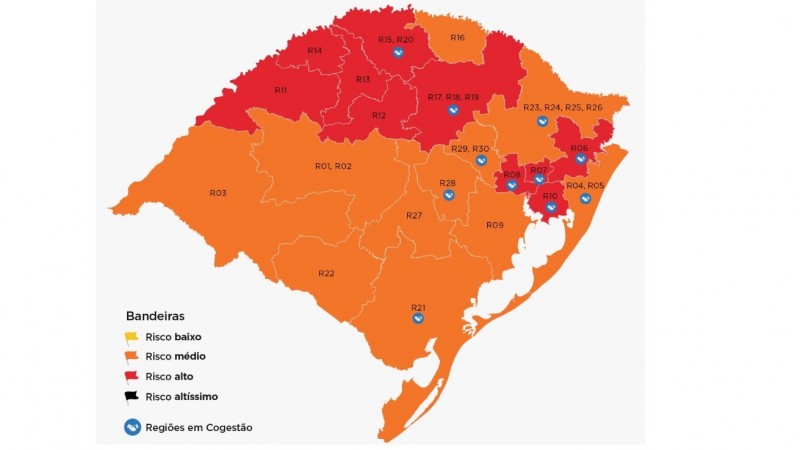 Até a tarde desta sexta, 11 regiões haviam aderido à cogestão, na qual as regiões podem adotar protocolos menos restritivos à bandeira na qual estão classificadas, mas no mínimo iguais à bandeira anterior: Capão da Canoa, Taquara, Novo Hamburgo, Canoas, Porto Alegre, Palmeira das Missões, Passo Fundo, Pelotas, Caxias do Sul, Santa Cruz do Sul e Lajeado. Além disso, os pedidos de Santo Ângelo, Ijuí e Santa Rosa estão sob análise do governo.