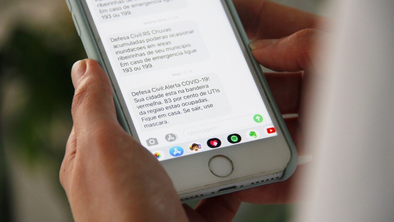 A partir dessa segunda-feira, 20, o governo do Rio Grande do Sul passa a emitir avisos sobre a Covid-19 no Estado por meio de mensagens de texto (SMS), utilizando o mesmo sistema de alertas da Defesa Civil. O serviço é gratuito e visa ampliar o acesso imediato da população a orientações e medidas adotadas pelo poder público estadual em relação à pandemia.