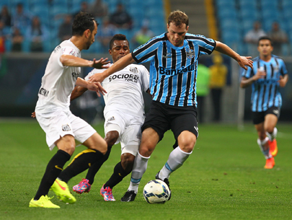 Grêmio e Santos empataram sem gols na noite desta quinta-feira, na Arena, em jogo que fechou a 21ª rodada do Campeonato Brasileiro. O Tricolor dominou a partida do início ao fim, mas não conseguiu concretizar em gols sua superioridade. Bem fechado, o Santos conseguiu segurar o resultado até o final. Apesar do empate, o Grêmio subiu uma posição na tabela. Ultrapassou o Fluminense chegando a quinta posição, com 36 pontos ganhos. A entrada na zona da Libertadores fica adiada para domingo.