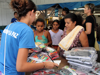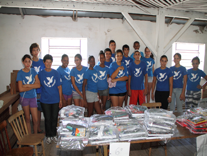 Integrantes do Grupo de Jovens Unidos Pela Paz trabalham com as crianças a educação pela paz