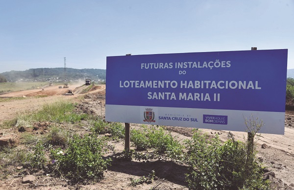 Recentemente, Santa Cruz do Sul recebeu a visita do secretário nacional de Habitação, do Ministério das Cidades, Augusto Rabelo. Os governos federal e municipal disponibilizarão 144 moradias no Loteamento Santa Maria 2, no Distrito Industrial, em uma obra com previsão de durar 18 meses. Com o auxílio do programa Minha Casa, Minha Vida, a intenção é entregar um complexo dotado de imóveis com 55,16 metros quadrados e estruturas com área de lazer, biblioteca, academia ao ar livre e playground.