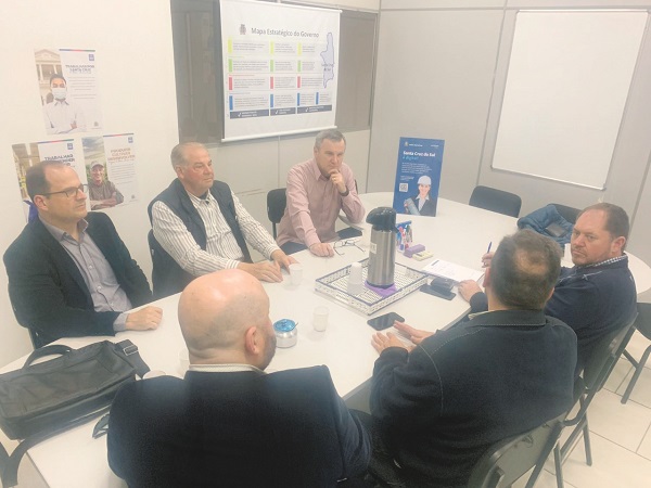 O vice-prefeito e secretário de Planejamento e Orçamento de Santa Cruz do Sul, Elstor Desbessell (Progressistas), recebeu na quarta, 17, representantes da Arccio Urbanizadora, de Porto Alegre. A visita teve como objetivo a apresentação de dois empreendimentos imobiliários que serão construídos no município. Os diretores Vinicius Dutra Rodrigues (Comercial), Sergio Leandro Chemale Selister (Executivo) e Vitor Hugo Pozzebon (Planejamento) foram recebidos por Desbessell e o secretário de Meio Ambiente, Saneamento e Sustentabilidade, Jaques Eisenberger.