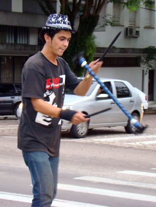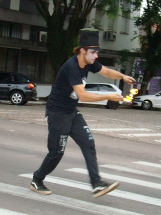 Os artistas de rua mostram a sua arte na sinaleira da Rua Tenente Coronel Brito com a Borges de Medeiros.