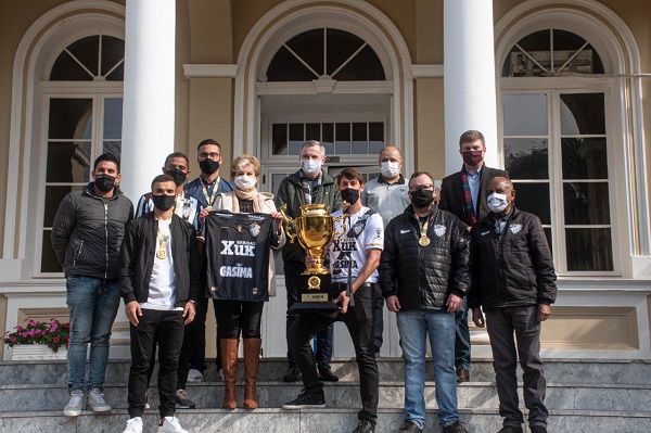 Um dia após a conquista heroica do Campeonato Gaúcho da Segunda Divisão, diretores, atletas e comissão técnica do Futebol Clube Santa Cruz foram recebidos pela prefeita Helena Hermany e o vice-prefeito Elstor Desbessell no Salão Nobre do Palacinho. Helena entregou a simbólica chave da cidade ao presidente do clube, Tiago Rech, ao zagueiro e capitão Luis Henrique Assmann e ao técnico Wiliam Campos.