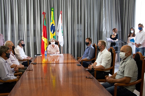 O ato na tarde desta segunda-feira contou com a presença do presidente da Câmara de Vereadores, Ilário Keller, vereadores da base, secretários municipais e servidores da prefeitura.