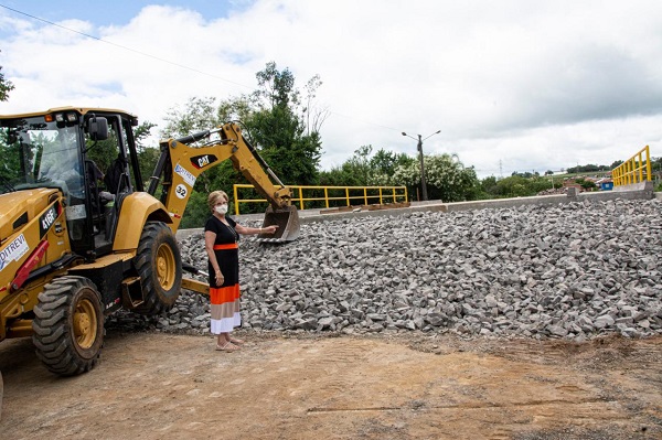 Na manhã de ontem, 18, a prefeita Helena Hermany conferiu o andamento das obras de construção das pontes nos loteamentos Santa Maria I e Viver Bem. Funcionários da empresa Ditrevi Engenharia trabalhavam no preenchimento das cabeceiras de uma das estruturas e também no acesso de ligação da via.