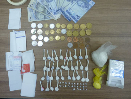 Dentro da residência foram apreendidas 25 pedras de crack, 34 buchinhas de cocaína já embaladas e outra duas buchas grandes de cocaína que ainda não haviam sido preparadas para a comercialização. O material também foi levado para a Delegacia, de onde seria encaminhado para o descarte.