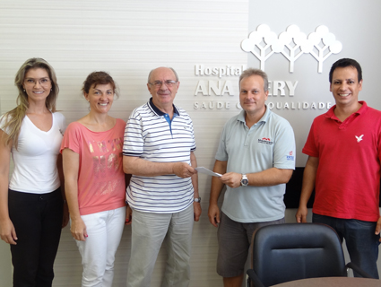 Recepcionados pelo Diretor Executivo do Ana Nery, Lídio Rauber, a Diretora Administrativa, Márcia Diehl e pela Coordenadora de Captação de Recursos, Vanessa Müller, o Presidente da Acomac Luciano Elias e o Tesoureiro Leandro Tietze entregaram o valor e colocaram a entidade à disposição para auxiliar em outras ações do Hospital.