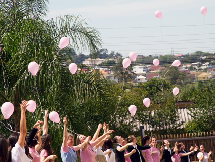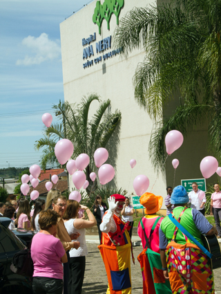 Após um abraço simbólico no prédio da oncologia, os participantes da ação soltaram balões na cor rosa que lembram alegria, felicidade e esperança e deixaram o céu colorido. Aguardada com muito carinho por todos os colaboradores do Hospital, a atividade dessa manhã também contou com a música e animação do grupo de voluntários “Doutores Só Riso”.