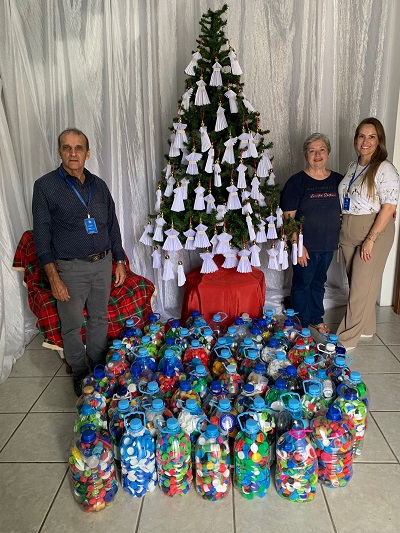 A Casa da Amizade de Santa Cruz do Sul realizou uma doação de 75 bombonas de tampas plásticas e lacres metálicos para o Projeto Bem na Tampa do Hospital Santa Cruz (HSC). As entregas foram feitas na sede da entidade nesta terça-feira, dia 2, pela integrante Carla Lavínia Pacheco da Rosa para a assistente de projetos e captação de recursos da Instituição, Tamara Riediger, e para o funcionário Valter Machado Silveira.