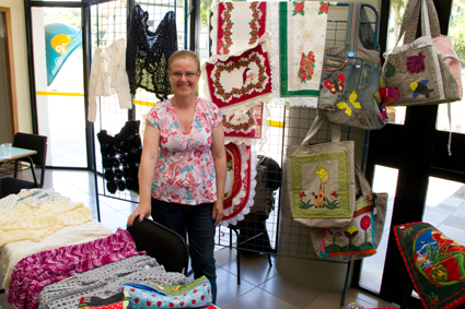 Lia Núbia aproveitou a oportunidade para expor seus artesanatos