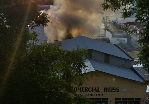 Um incêndio de grandes proporções foi registrado na Rua Senador Pinheiro Machado, 938, em um estabelecimento comercial, próximo ao Hotel Antônio’s, no final da tarde desta sexta-feira, 25. No local fica uma loja de assistência técnica de motosserras.