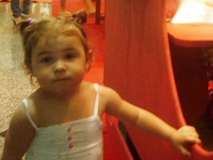 A pequena Maria Antônia passeava pelo Shopping