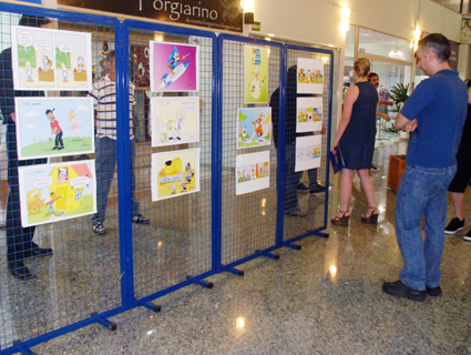 Mais de 40 charges e quadrinhos estão expostos no Max Shopping