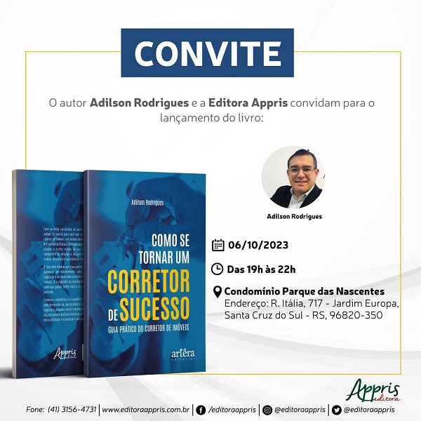 Como se tornar um corretor de sucesso: guia prático do corretor de imóveis foi escrito para quem está iniciando a carreira como corretor e tem dúvidas sobre a área, ou ainda não tem certeza se é essa a profissão que deseja seguir. “Sempre tem novos corretores no mercado, e normalmente eles não estão preparados. Esse livro vai ajudar bastante”, explica o escritor Adilson Rodrigues. Com linguagem simples e relatos de sua experiência pessoal, o autor compartilha os desafios e as oportunidades que um corretor de imóveis encontra em sua rotina de trabalho.