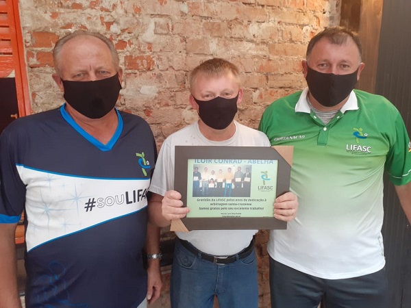A coordenação da Liga de Integraçao do Futebol Amador de Santa Cruz do Sul (Lifasc) prestou uma homenagem a Iloir Conrad, o popular Abelha, nessa quarta-feira, 13. Abelha despediu-se do quadro da Associação Santa-cruzense de Árbitros (Asca) há alguns dias, onde ocupava o cargo de diretor de árbitros. Mas iniciou como árbitro auxiliar há 23 anos na entidade e sempre teve um forte envolvimento com todas as competições.