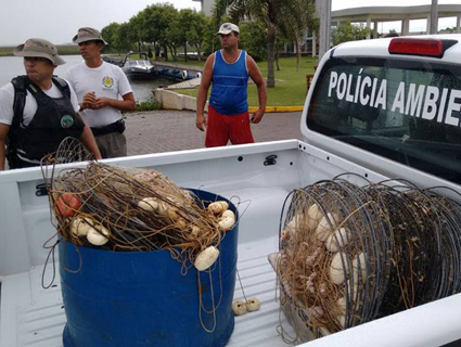 Nesta segunda-feira, 19 de janeiro, o Comando Ambiental navegou no Rio Tramandaí realizando mais uma operação varredura, e flagrou dois pescadores no Rio Tramandaí praticando pesca irregular. Ambos pescavam siris com o apetrecho coca/puçá – uma espécie de cestinha – sem o Registro Geral de Pesca/RGP e sem Licença Ambiental do IBAMA.