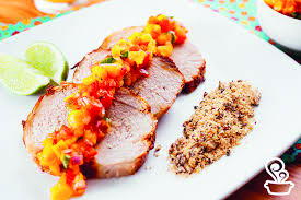 Se você também ama comidinhas com um toque adocicado e refrescante, você precisa fazer essa receita de lombo de porco com vinagrete de manga. Essa vinagrete combina perfeitamente com a carne de porco e fica tão boa, que dá até para comer pura! Pode relaxar, essa receita é super fácil! O lombo de porco é um corte fácil de se trabalhar, que geralmente vem sem gordura. Você só precisa temperar bem e cuidar de regar enquanto assa para ele não ficar seco demais. O ideal é deixar a carne temperando de um dia pro outro, ok?