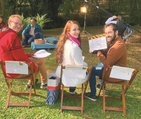 Milena Moraes, Vitor Vogt e equipe no processo de produção do filme “Tipo Borboleta”
