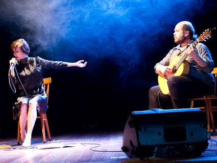 A cantora Patrizia Laquidara acompanhada do músico Giancarlo Bianchetti durante o show realizado sexta-feira, 11 de maio, no Teatro do Colégio Mauá. A apresentação integra o Festival Palco Itália 2012, realizado pela ONG Pontes entre Culturas em parceria com o Círculo Cultural Bella Itália, que comemora 10 anos.