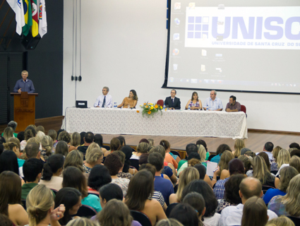 O Auditório Central da Universidade de Santa Cruz do Sul (Unisc), ficou lotado na última terça-feira, 19, quando mais de 800 professores vindos de diversas cidades da região do Vale do Rio Pardo e Centro -Serra, encontraram-se para assistir palestra, participar de oficinas e debater sobre educação.